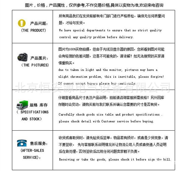 1.我公司對生產(chǎn)的全部產(chǎn)品實行“三包”,保證產(chǎn)品采用較佳材料和一流工藝,符合合同規(guī)定的質(zhì)量﹑規(guī)定和性能要求。保證其合同設(shè)備經(jīng)過正確安裝﹑合理操作和維護保養(yǎng),在合同設(shè)備使用期內(nèi)運轉(zhuǎn)良好,在規(guī)定的質(zhì)量保證期內(nèi),對由于設(shè)計工藝或材料的缺陷而造成的故障負責(zé),免費負責(zé)修理或更換有缺陷的電器元件。